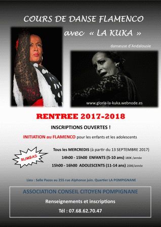 19h00-20h00 Flamenco/Rumbas , ADOS / ADULTES (1h/semaine , 175 €/année), (inscription trimestrielle 83 €)